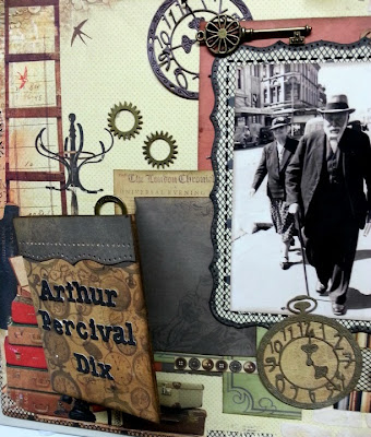 I will add some more journalling on the back pages when I get some more information about Arthur Percival Dix. I loved the photo of my DH's Great grandfather walking down the street and just had to scrap it. I was told that DH has many likenesses to his great grandfather whom he never got to meet.